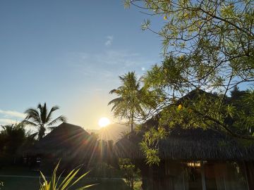 ●モーレアでは、毎日みんなが桟橋に夕陽を観に行っていました。 ランギロアは、部屋の目の前が海だったので、テラスから海を見ているだけで幸せでした。